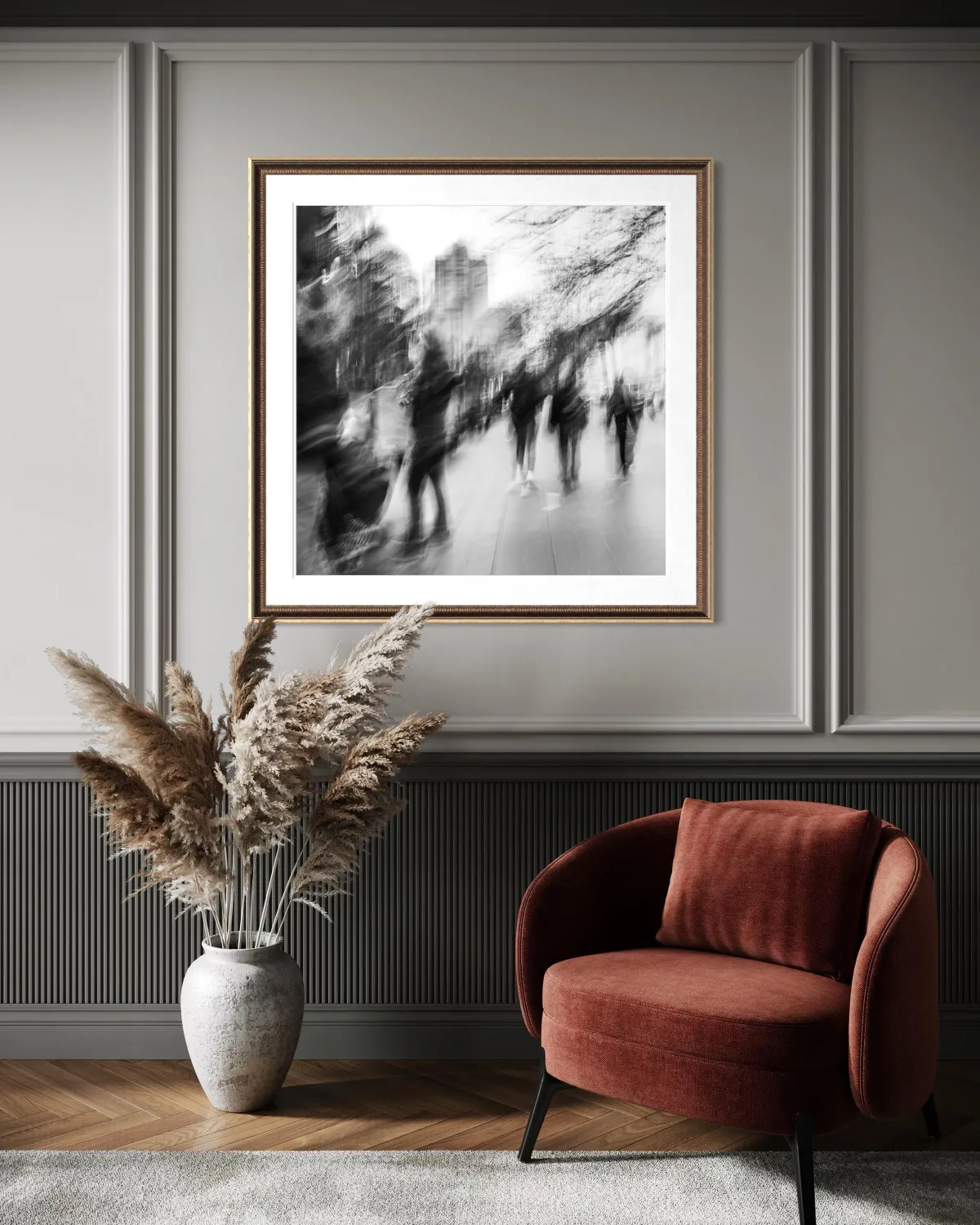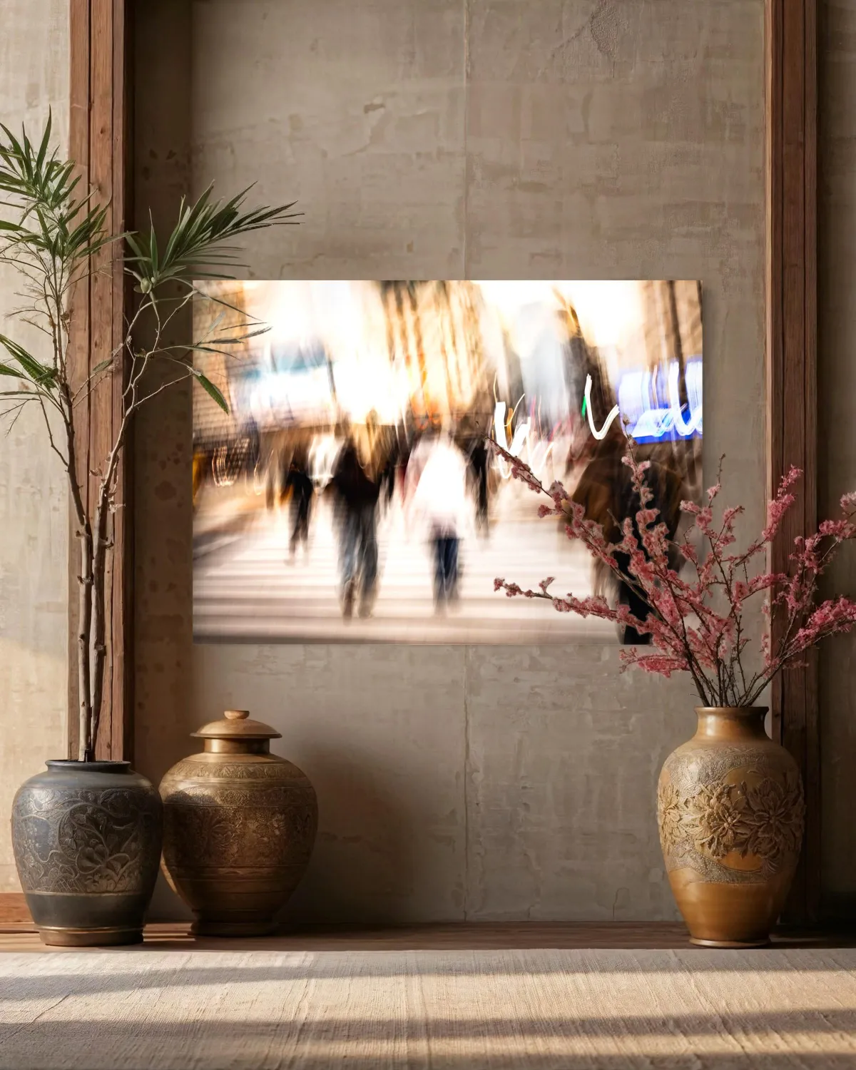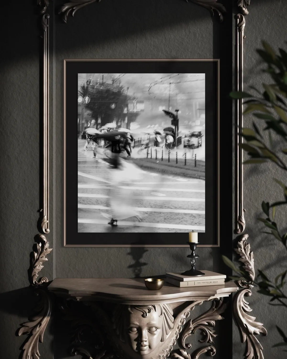Street Symphony captures the spontaneous movement of people in transit—gestures aligning, footsteps overlapping, and brief crossings unfolding like unplanned performance. Through long exposure and intentional camera motion, everyday streets become stages where human presence leaves its trace.