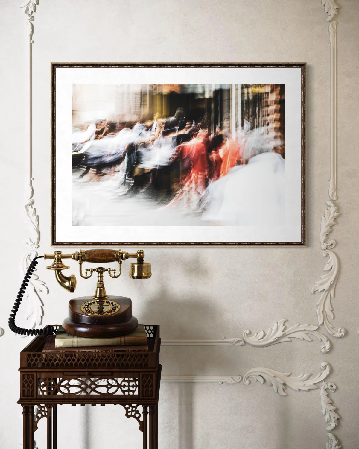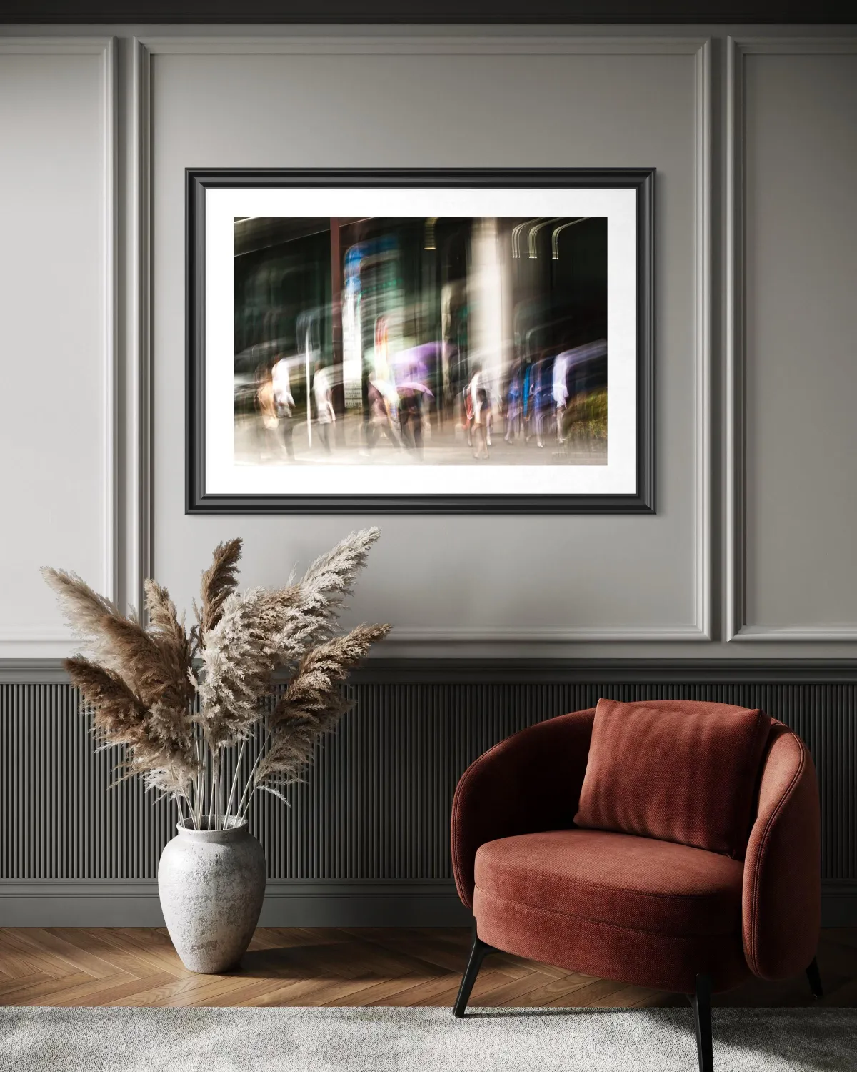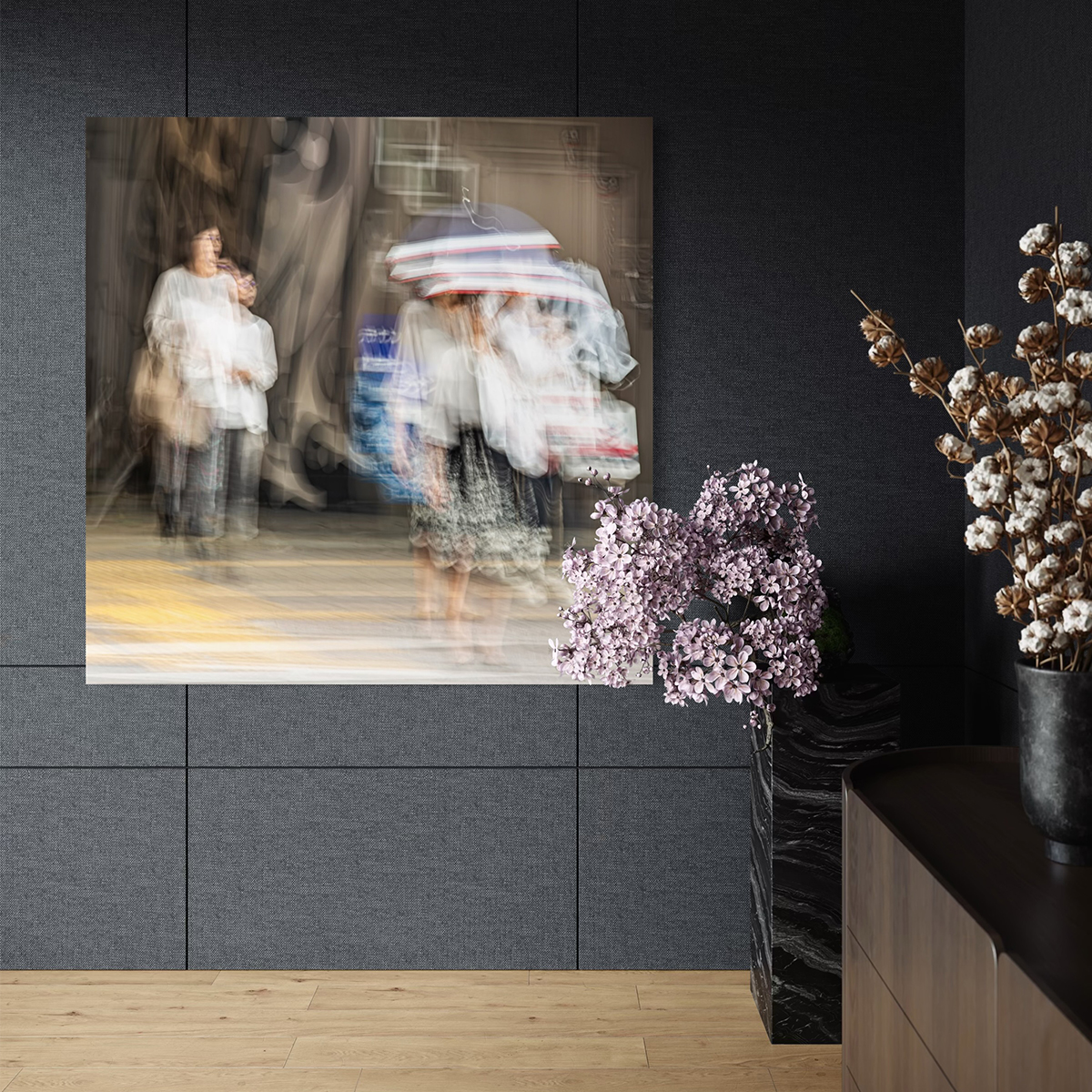 Street Symphony captures the spontaneous movement of people in transit—gestures aligning, footsteps overlapping, and brief crossings unfolding like unplanned performance. Through long exposure and intentional camera motion, everyday streets become stages where human presence leaves its trace.